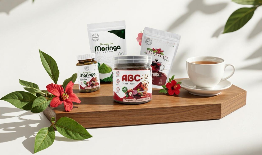 We offer a range of natural and wellness-focused products crafted to support a healthy lifestyle. Our Moringa Powder and Moringa Tablets are made from premium, nutrient-rich Moringa leaves known for their immunity-boosting and energizing benefits. We also bring you refreshing herbal beverages like Hibiscus Tea and Blue Pea Tea, both celebrated for their antioxidants and soothing properties. In addition, our ABC Malt provides a wholesome blend that supports daily nourishment for all age groups. All our products are carefully prepared to deliver purity, taste, and health in every sip and serving.